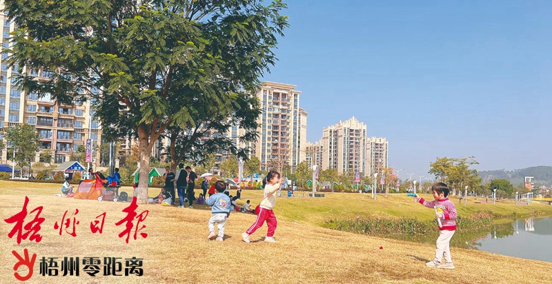 梧州軍博園的大片草地適合遛娃,帶上一只風箏、一只皮球、一張野餐墊,就可以盡情玩耍。不少家長也會帶著孩子到軍博園玩,小孩很容易就湊在一起玩耍,家長便能坐在一旁看著孩子天真爛漫的笑臉,安靜地享受閑暇的冬日時光。