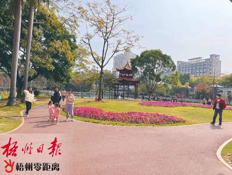 在潘塘公園,家長帶著孩子在散步游玩。梁燕如文并攝