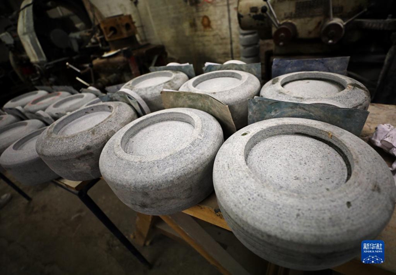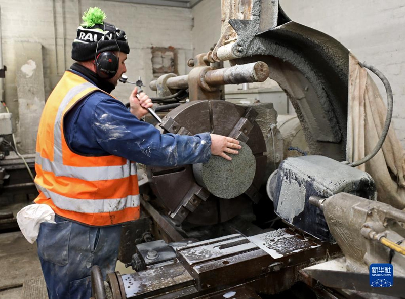 從1924年首屆冬奧會(huì)時(shí)冰壺亮相,到1998年長(zhǎng)野冬奧會(huì)起保持正式比賽“編制”,凱斯冰壺廠的冰壺幾乎不曾缺席。蘇格蘭西海岸附近的艾爾莎·克雷格島是目前奧運(yùn)冰壺的原材料唯一產(chǎn)地。從切割原石到打磨、粘合、手工拋光等,一個(gè)冰壺的生產(chǎn)大約要經(jīng)歷20道工序。為了北京冬奧會(huì),凱斯工廠生產(chǎn)了190多個(gè)冰壺,然后精選出96個(gè)送上賽場(chǎng)。這是被碼放在凱斯冰壺廠外的冰壺(1月24日攝)。新華社記者李穎攝