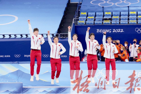 女子接力決賽中,半決賽以小組第二身份晉級的中國隊,與平昌冬奧會銅牌得主荷蘭隊、該項目6屆冬奧會冠軍韓國隊以及擁有最多世錦賽冠軍頭銜(16冠)的加拿大隊展開較量。最終女子1000米冠軍舒爾廷領銜的荷蘭隊以4分03秒409、刷新奧運會紀錄的成績率先沖線,金雅朗率領的韓國隊以4分03秒627摘銀,中國隊以4分03秒863名列第三。