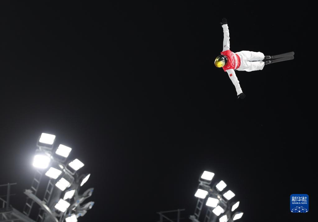 2月14日,中國(guó)選手徐夢(mèng)桃在自由式滑雪女子空中技巧比賽中奪冠。新華社記者牟宇攝