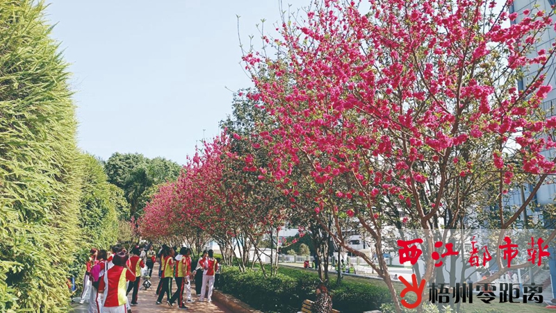 當(dāng)下春光正好,我市多處桃樹(shù)紛紛綻放艷麗的花朵,格外引人注目,吸引了眾多市民群眾駐足觀賞,拍照留念。西江都市報(bào)記者 李鴻榮 攝