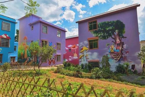 現在的虎頭村好似一個色彩斑斕的童話世界,絢麗的房子,整潔的巷道,題材多樣的壁畫,令人目不暇接。虎頭村的彩繪壁畫有“夢里水鄉、龍宮幻影、瑤文雅韻、遠近家園”四大主題,在虎頭村漫步,就如穿行在色彩斑斕的童話世界中,每一個轉角都是驚喜,每一條巷道都是驚嘆。