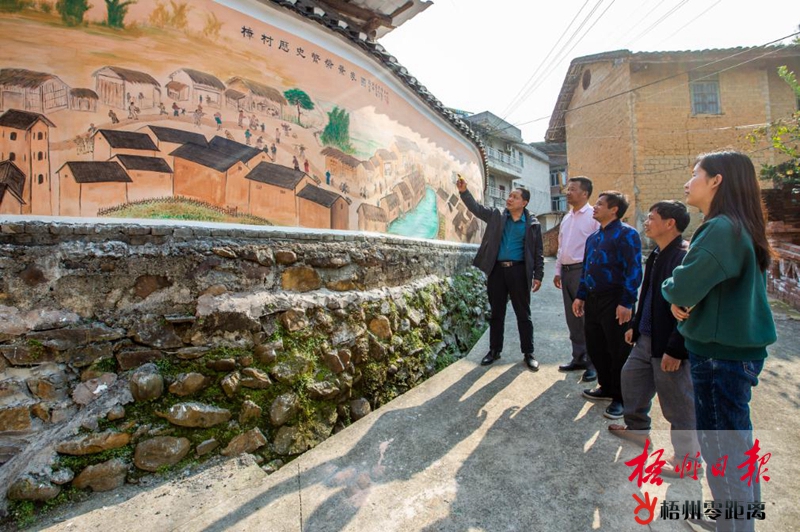 近日,游客在蒙山縣漢豪鄉樟村觀賞該村的特色墻繪。黃勝林 攝