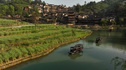 4月11日拍攝的貴州省遵義市播州區烏江寨景區一角(無人機照片)。