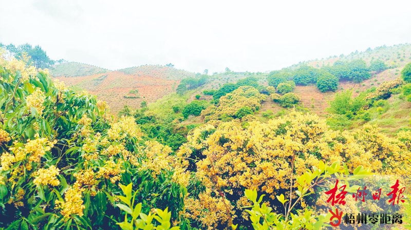 4月17日,在藤縣濛江鎮上岸村,種在山坡上的荔枝樹陸續開花。據當地果農介紹,該村種植的荔枝品種為濛江黑葉荔枝,預計6月初成熟上市。