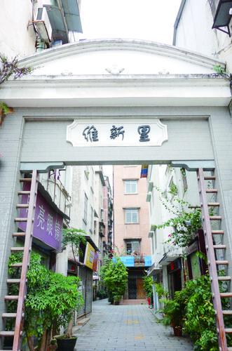 從巷口進入,巷口處立有一個牌坊,牌坊上雕刻“維新里”三個大字。在入巷處灰舊的墻上嵌有一塊水泥板,上面有介紹維新里近代民居群的文字。