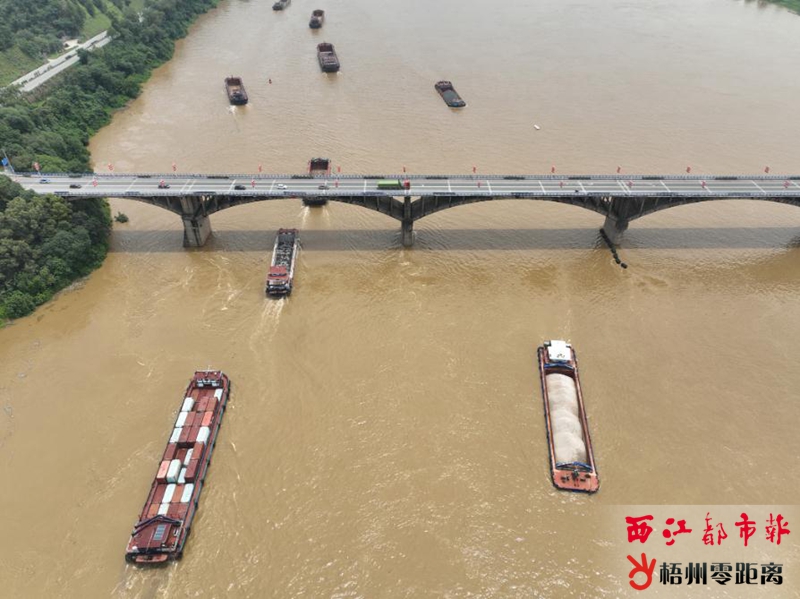 為充分利用施工空檔期提高船舶周轉率和航道通過能力,梧州航道養(yǎng)護中心于5月26日12時起恢復長洲水利樞紐至桂江河口航段雙向通航。圖為西江大橋航段恢復雙向通航。 (林迪 攝)