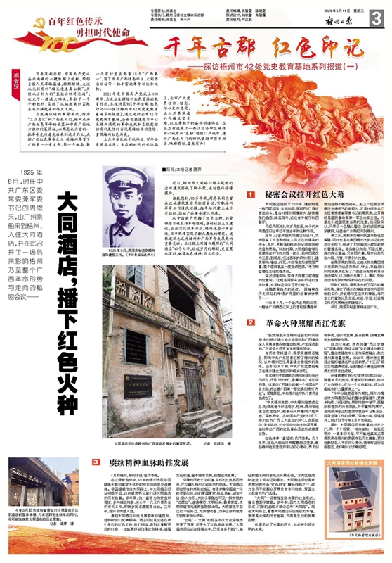 推出“在習近平新時代中國特色社會主義思想指引下——迎建黨百年譜八桂新篇·黨史學習教育”“千年古郡紅色印記——探訪梧州市42處黨史教育基地”等專欄和系列報道。