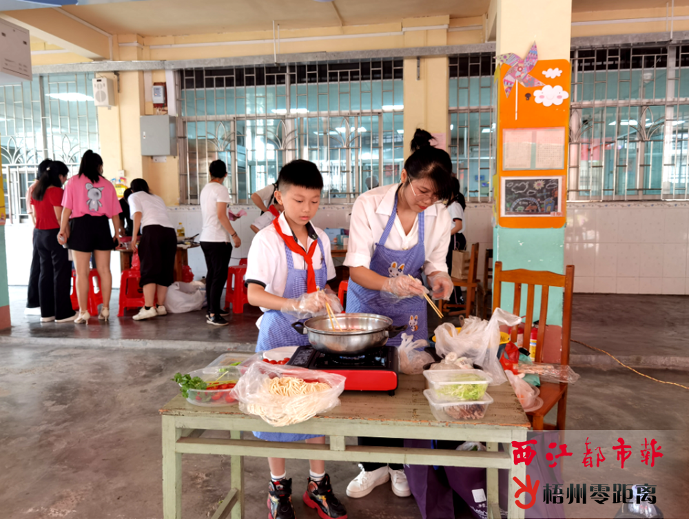 5月30日,市第一實驗小學的學生們與家長一起合作烹飪菜肴。記者 吳艷虹 攝