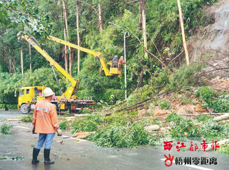 6月14日,桂林路十二步梯路段因降雨發(fā)生山體滑坡,造成部分公路堵塞,有關(guān)部門進(jìn)行緊急除險(xiǎn)作業(yè)。梧州日?qǐng)?bào)記者 何鎏 攝