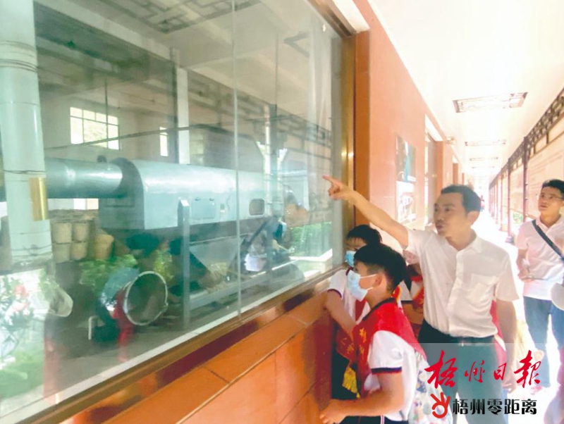 學(xué)生們參觀六堡茶生產(chǎn)車間,了解六堡茶的生產(chǎn)流程。