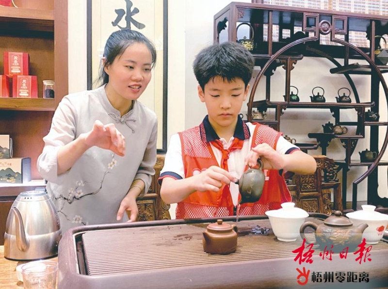 梧州零距離網(wǎng)-梧州日報訊(記者 覃競儀)6月17日,市第一實(shí)驗小學(xué)45名學(xué)生到梧州市茂圣六堡茶業(yè)有限公司(以下簡稱茂圣公司)開展六堡茶文化研學(xué)活動。參加研學(xué)后,孩子們對六堡茶文化有了進(jìn)一步的了解和認(rèn)知,也學(xué)習(xí)了梧州茶文化的悠久歷史和豐富的藝術(shù)內(nèi)涵。