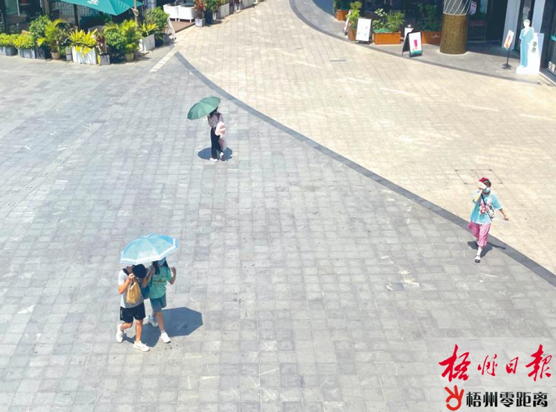 7月14日,旺城廣場周邊熱浪滾滾,市民防曬各出其招。據氣象部門預測,未來幾天我市將出現35℃以上的高溫天氣,提醒市民注意防暑降溫。梧州日報記者 楊揚 攝