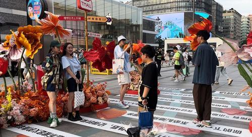 據(jù)主創(chuàng)團(tuán)隊(duì)之一、杭州上城文商旅集團(tuán)有限公司總經(jīng)理陳詠梅介紹,本次“青春不散場(chǎng),理想不畢業(yè)”斑馬線打卡活動(dòng)延續(xù)了“520愛心斑馬線”的活動(dòng)形式,在畢業(yè)季這個(gè)時(shí)間節(jié)點(diǎn),進(jìn)行線下展陳,為畢業(yè)生打造一款打卡地。“‘浪漫花路’運(yùn)用了非常多鮮花元素,也是想要祝福大家前程似錦,一路繁花。”陳詠梅說。