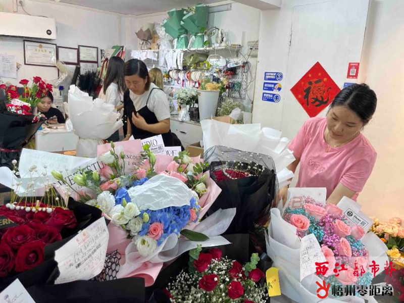 梧州零距離網-西江都市報訊(記者 鄧超妍)今年8月4日是中國的傳統節日七夕節,不少人早早便準備好禮物送給自己的另一半表達愛意,口紅、香水、飾品等銷量明顯增長。眾多節日禮品中,鮮花仍然是大多數消費者的首選。