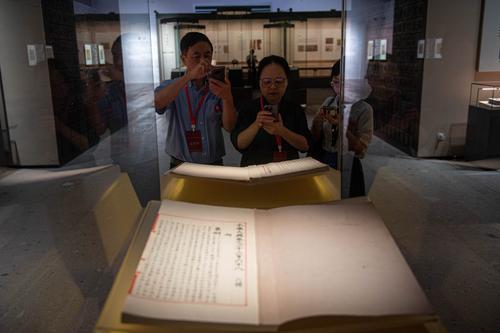 7月30日,觀眾在中國國家版本館杭州分館參觀展品。新華社記者江漢攝
