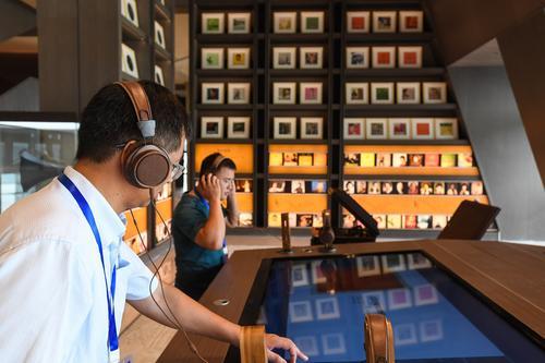 7月30日,參觀者在中國國家版本館廣州分館中國流行音樂版本展示區體驗試聽。新華社記者劉大偉攝