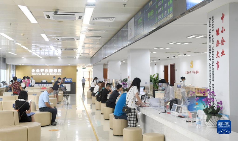 市民在廣州市開(kāi)發(fā)區(qū)政務(wù)服務(wù)中心企業(yè)開(kāi)辦服務(wù)區(qū)辦理業(yè)務(wù)(2022年9月15日攝)。新華社記者 盧漢欣 攝