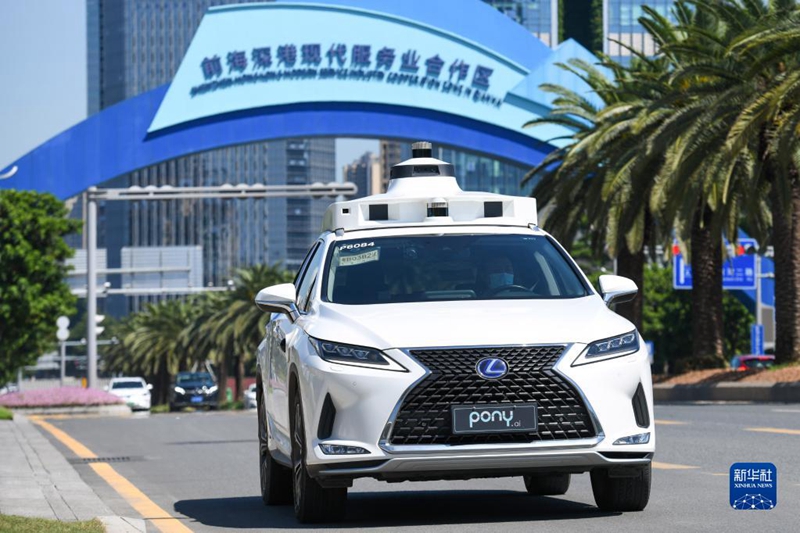 小馬智行自動(dòng)駕駛汽車在深圳前海道路上行駛(2022年8月1日攝)。新華社記者 梁旭 攝