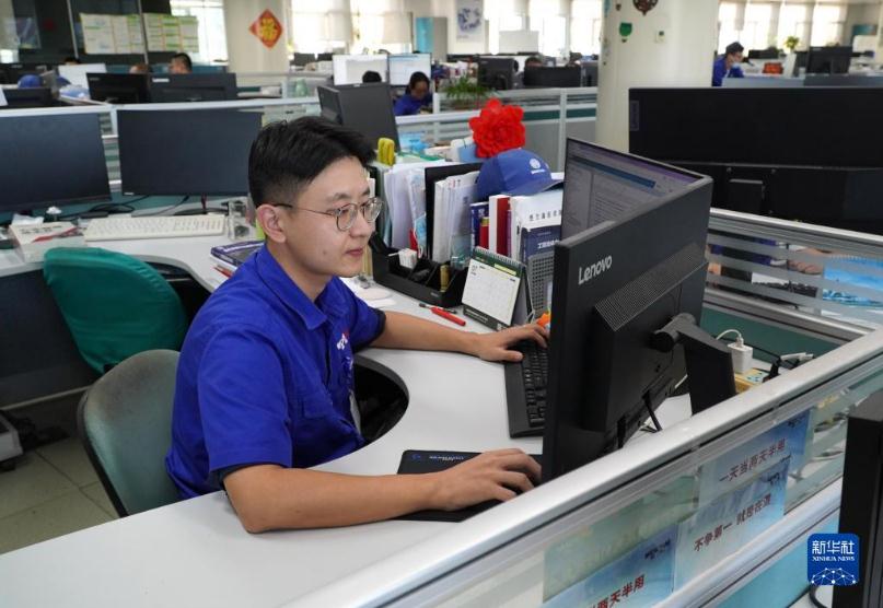 在山東省濰坊市,濰柴集團25歲的工程師付萬鑫在工作中(9月19日攝)。新華社記者 徐速繪 攝