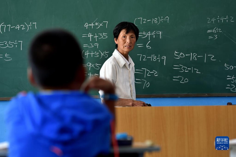 劉桂珍在山西省代縣王家會小學上數學課(資料照片)。新華社記者 詹彥 攝