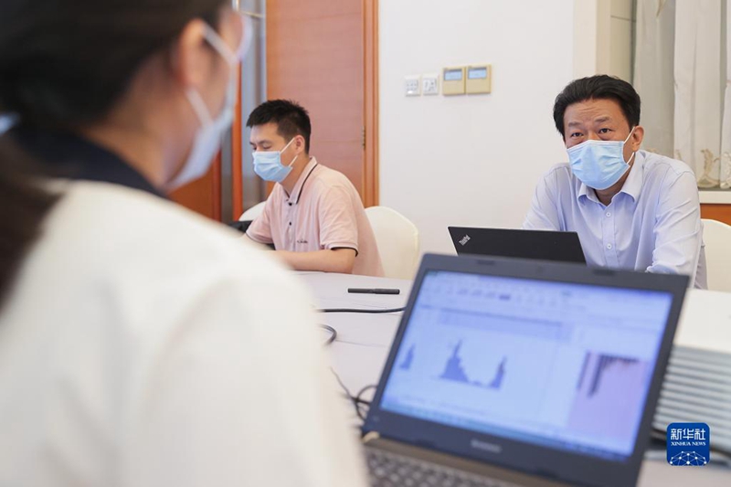 李群(左)在北京指導(dǎo)流調(diào)溯源數(shù)據(jù)分析工作(2022年9月18日攝)。新華社記者 張玉薇 攝