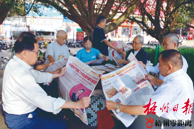 黨的二十大報告在藤縣干部群眾中引起強烈反響,大家通過多種渠道學習報告精神。10月17日,在藤縣縣城文化廣場的樹蔭下,市民群眾通過閱讀報紙學習黨的二十大報告。