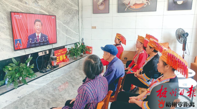 梧州零距離網-梧州日報訊 從古城永安到瑤家村寨,從社區廠礦到企業鄉村,10月16日,蒙山縣各族人民懷著激動、喜悅的心情,以多種形式、多種渠道收聽收看了中國共產黨第二十次全國代表大會開幕會直播,引發熱烈反響。聆聽了習近平代表第十九屆中央委員會向黨的二十大所作的報告后,大家倍感振奮、干勁十足。