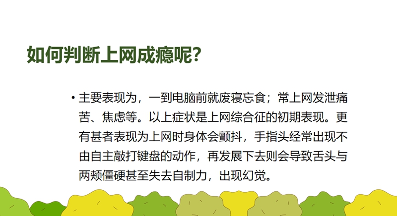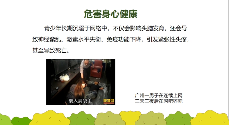 近年來,因未成年人沉迷網絡引起的社會矛盾凸顯,引發社會普遍關注。為引導未成年人科學合理地使用網絡,遏制沉迷網絡等不良行為,切實保護未成年人身心健康,請家長們與學校一起做好未成年人的教育引導,幫助孩子做到健康上網、正確用網。