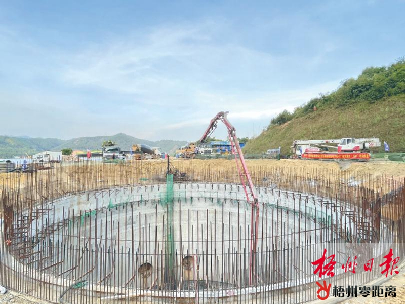 11月1日,梧州市江南片區居民飲用水水源地環境提升項目取水泵房下部結構(沉井)順利封底。宋珊 古重任 攝