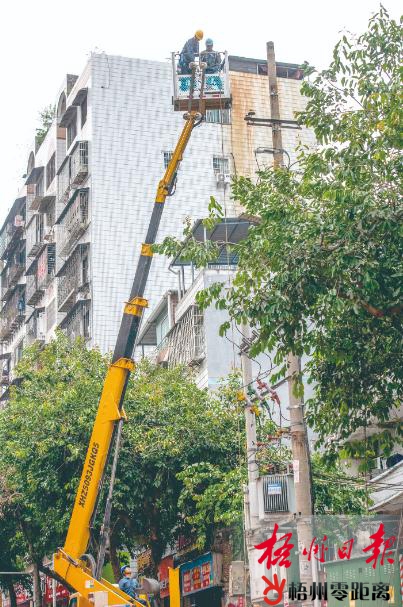 11月3日,在步埠路,南方電網(wǎng)廣西梧州供電局施工人員拆除10千伏云步雙回路架空線。