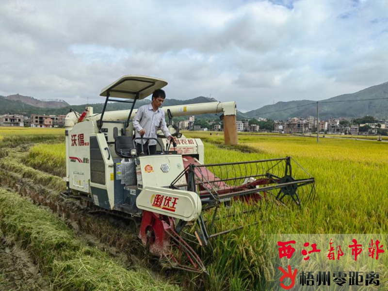 梧州零距離網-西江都市報訊(記者 陳益銘 通訊員 羽冬梅 黃錦霞)眼下正值晚稻豐收季。趁著晴好天氣,岑溪市各鄉鎮農戶陸續開鐮收割晚稻。