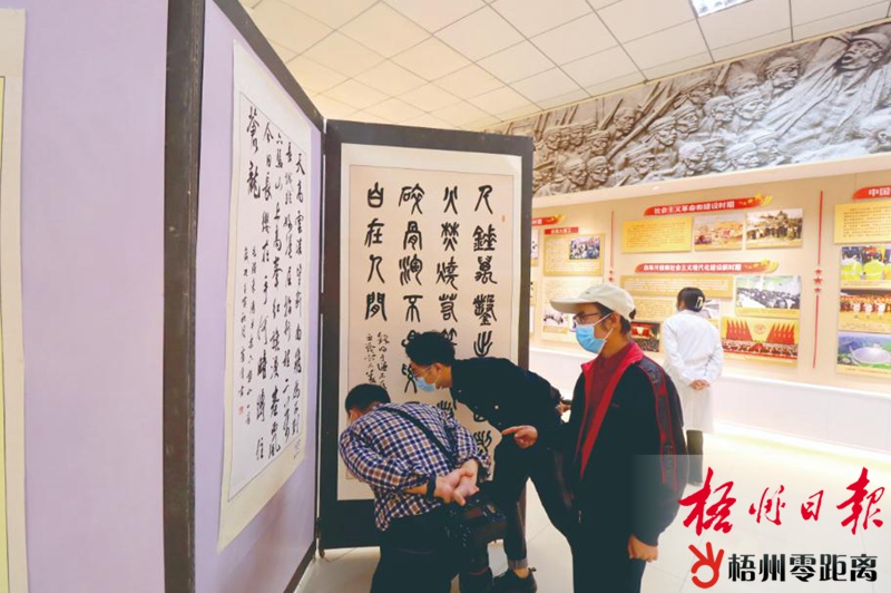 11月13日,在市總工會(huì)職工之家展出的2022年“中國(guó)夢(mèng)·勞動(dòng)美——詩(shī)書(shū)頌中華 禮贊二十大”梧州市職工書(shū)法展吸引市民群眾駐足鑒賞。