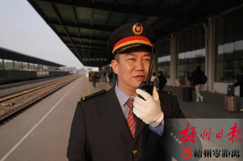 2021年4月的一天,梧州車務(wù)段梧州站T82次列車正在檢票,李紹雄和往常一樣,在站臺(tái)上組織旅客排隊(duì)候車。列車進(jìn)站前,他前后瞭望,觀察旅客動(dòng)態(tài)。在人群中,他察覺到一對(duì)夫妻情緒有點(diǎn)激動(dòng),看起來不太對(duì)勁,為防止意外發(fā)生,他便一直關(guān)注著這兩個(gè)人。
