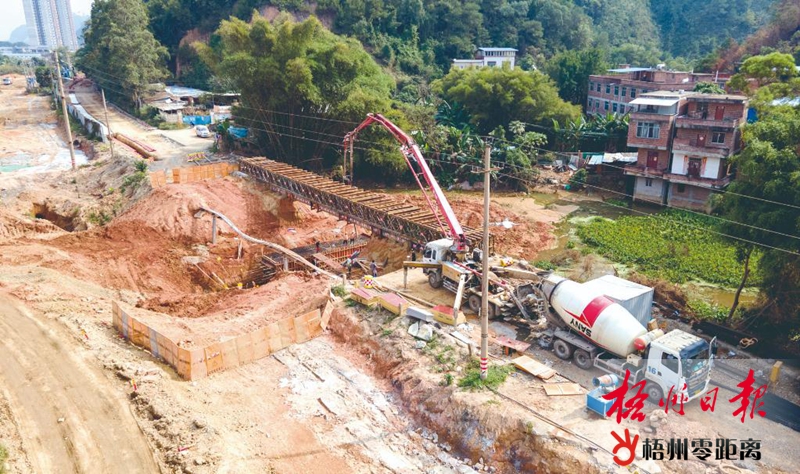 11月15日,梧州市南岸路網高旺大橋至云龍大橋路段持續推進箱涵混凝土澆筑、土方回填、雨污水過路管道埋設等,為下一步路面鋪設做準備。目前,道路工程、交通工程、排水工程、道路照明工程、電力排管工程、通信管道工程以及綠化工程等有序推進,高旺大橋橋頭至云龍大橋路段提升工程預計今年年底完工,屆時高旺片區通行環境將大幅提升。梧州日報記者 陳凡 攝
