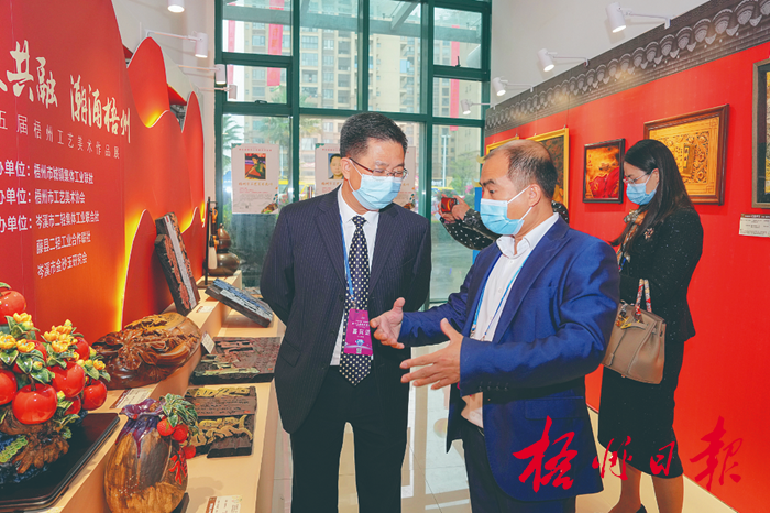 11月25日,嘉賓們在第五屆梧州工藝美術作品展參觀。 記者 楊揚 攝