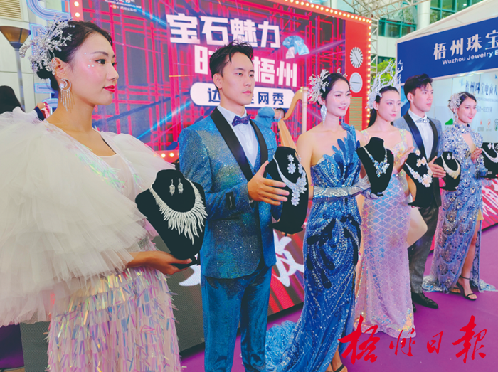 11月25日,“寶石魅力 時(shí)尚梧州”達(dá)人全網(wǎng)秀中,模特集中展示各式寶石飾品。 記者 何鎏 攝