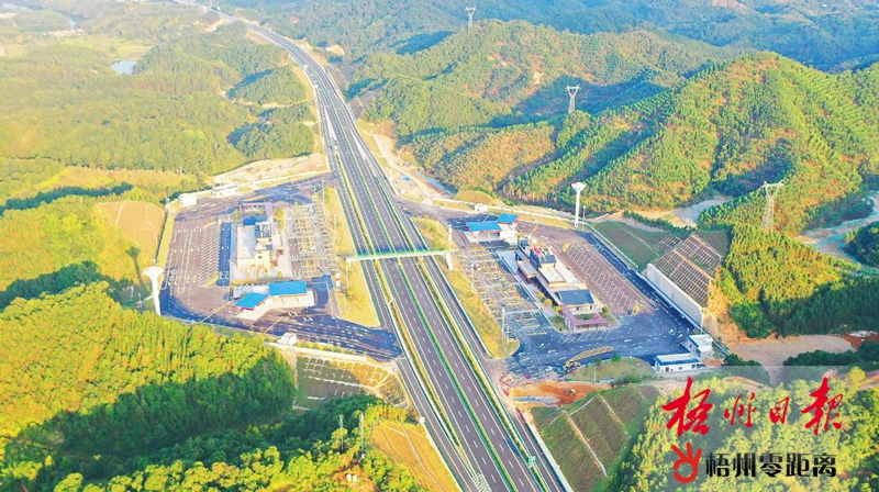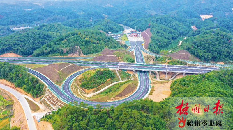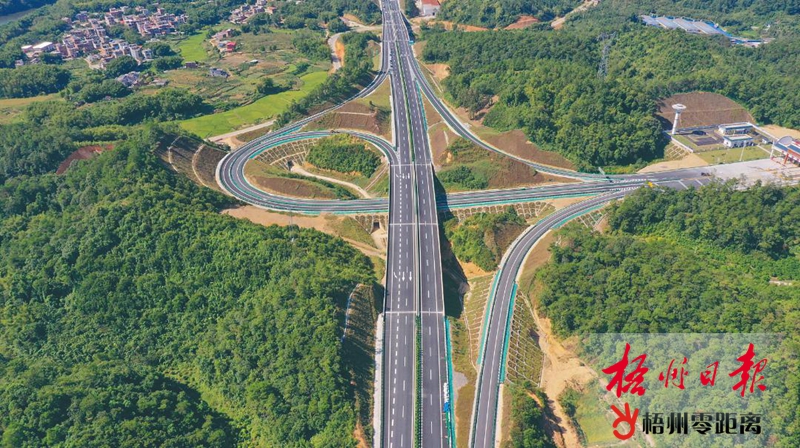 信梧高速的正式通車運營,結(jié)束蒼梧縣新縣城不通高速的歷史。圖為信梧高速蒼梧互通。