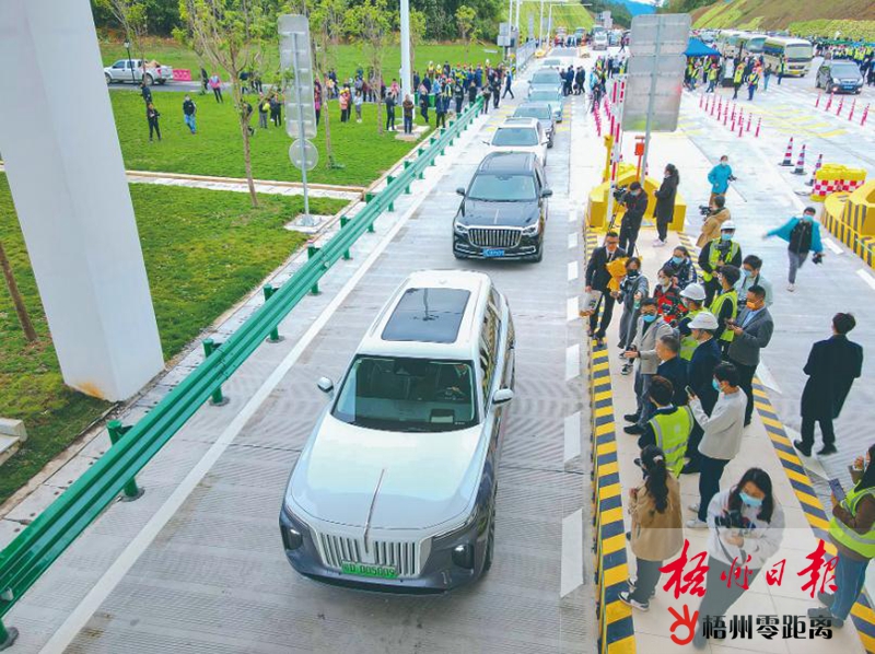 11月30日,通車儀式后,首批社會車輛通過收費站進入高速路。梧州日報記者 何鎏 攝