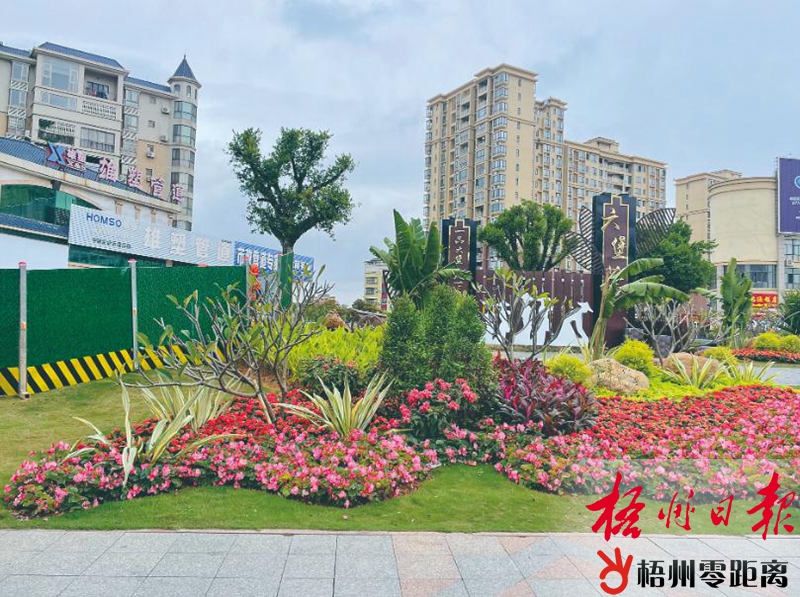 近日,在新興三路龍魚轉盤附近,由四季海棠、長壽花、粉紙扇和各種綠植搭配,并融入六堡茶主題裝飾形成的立體景觀,既為道路添彩,又彰顯梧州特色。梧州日報記者 楊揚 攝