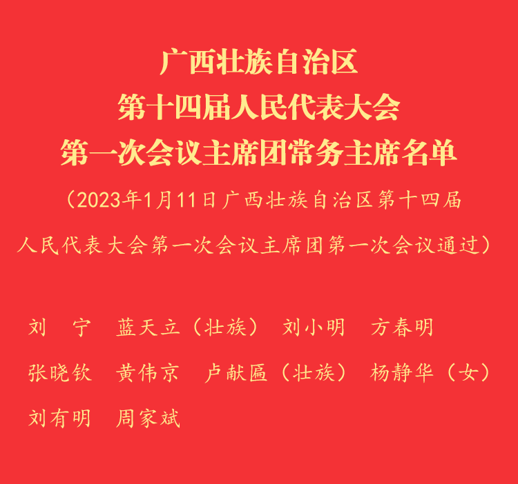 廣西壯族自治區(qū)第十四屆人民代表大會第一次會議主席團常務主席名單