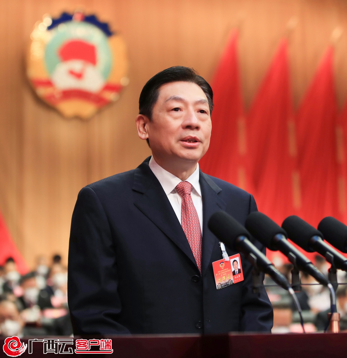 孫大偉代表政協第十二屆廣西壯族自治區委員會常務委員會作工作報告。廣西日報-廣西云客戶端記者 黃克 攝
