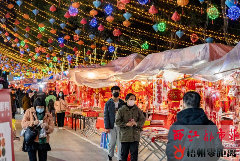 1月17日,位于旺城廣場西側的年貨一條街彩燈絢麗,各色新春飾品琳瑯滿目,吸引不少市民前來選購。隨著新春佳節臨近,市場監管部門通過施行柔性監管服務,支持小店地攤、夜市經濟活躍起來。近段時間,越來越多年貨攤檔加入到夜市經濟的隊伍中來,讓市民購物更加便捷,城市煙火氣更加濃厚。西江都市報記者 陳凡 攝