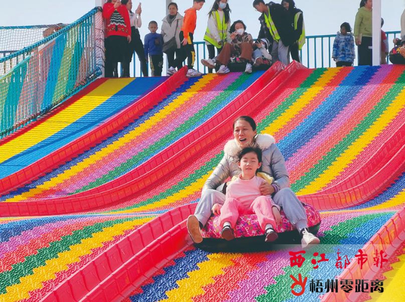 1月25日,在萬達廣場的無動力樂園內,市民開心體驗游戲項目。梧州日報記者 何鎏 攝
