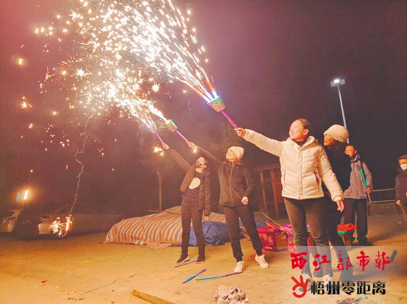 1月22日凌晨,市民在龍圩區新地鎮都梅村燃放煙花,迎接農歷新年。梧州日報記者 何鎏 攝