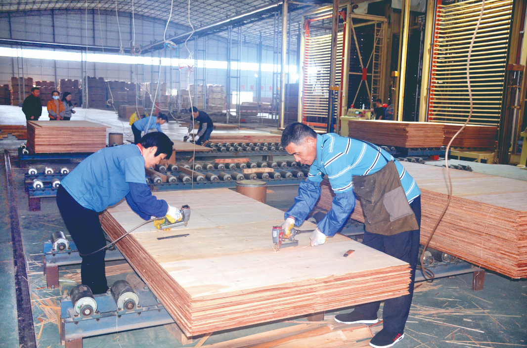 岑溪市鑫沐林木業(yè)有限公司于2021年9月投產(chǎn),每天可生產(chǎn)5000多張實木多層生態(tài)板基材,2022年產(chǎn)值4000多萬元,80名工人已全部復(fù)工。