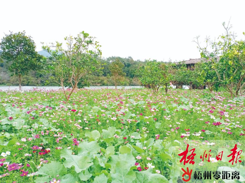 岑溪市大隆鎮大塘水鄉的格桑花盛開,燦若云霞。