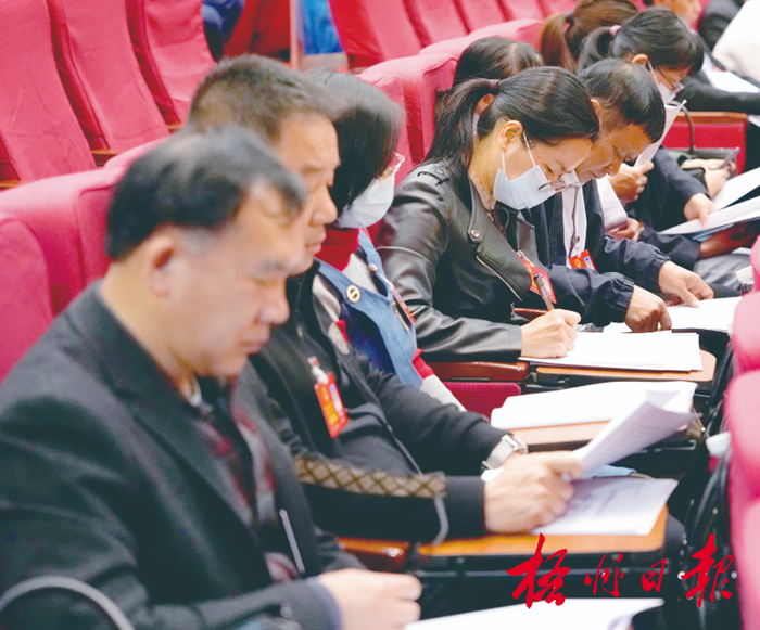 2月23日,市人大代表在會上認真聽取政府工作報告。楊揚 攝