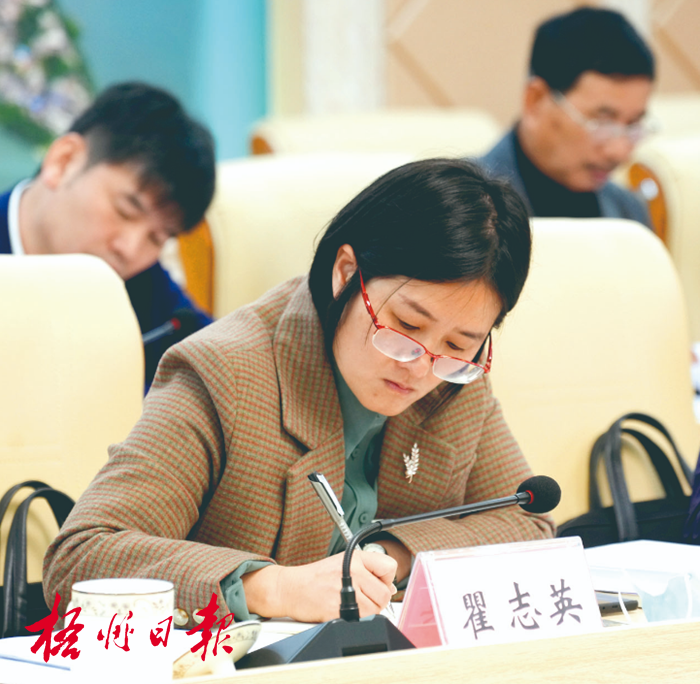 2月22日,市人大代表在審議政府工作報告時,認真做筆記。楊揚 攝